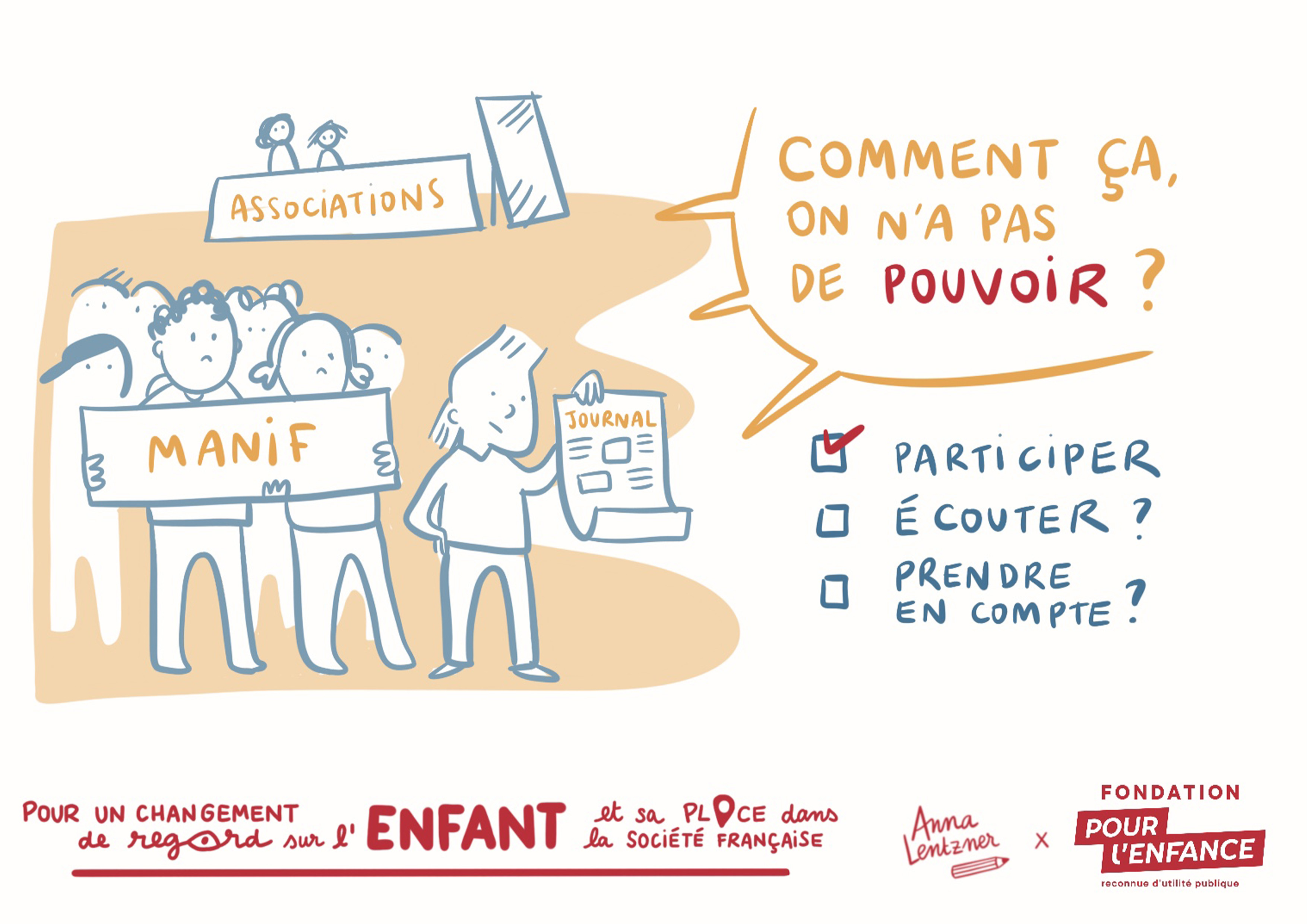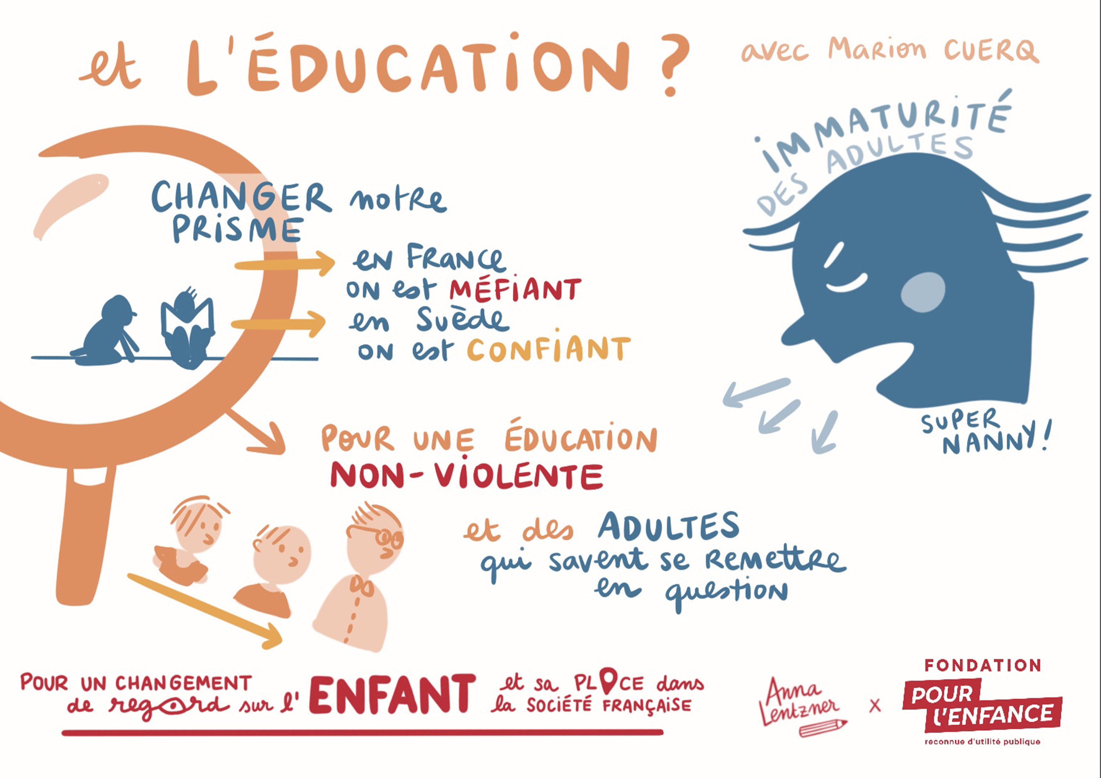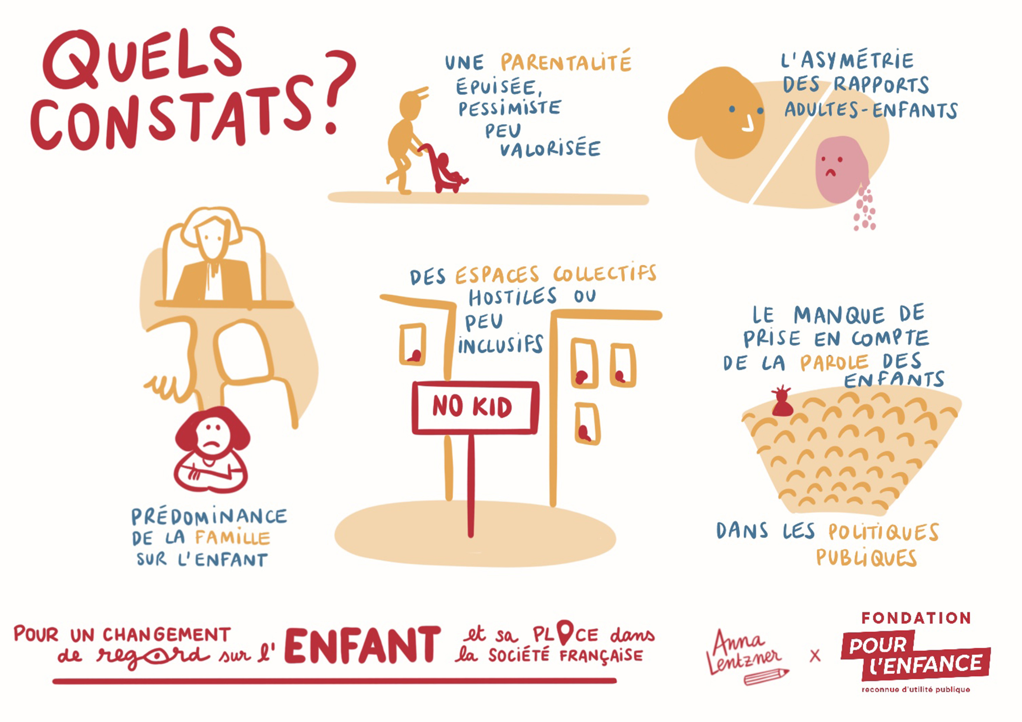 Début janvier 2026, la Fondation pour l’Enfance publiait l’Acte 1 d’un rapport sur la place de l’enfant dans la société française, et organisait une conférence publique sur le sujet. Je suis intervenue à cette occasion pour traduire en dessin les échanges de la table-ronde.