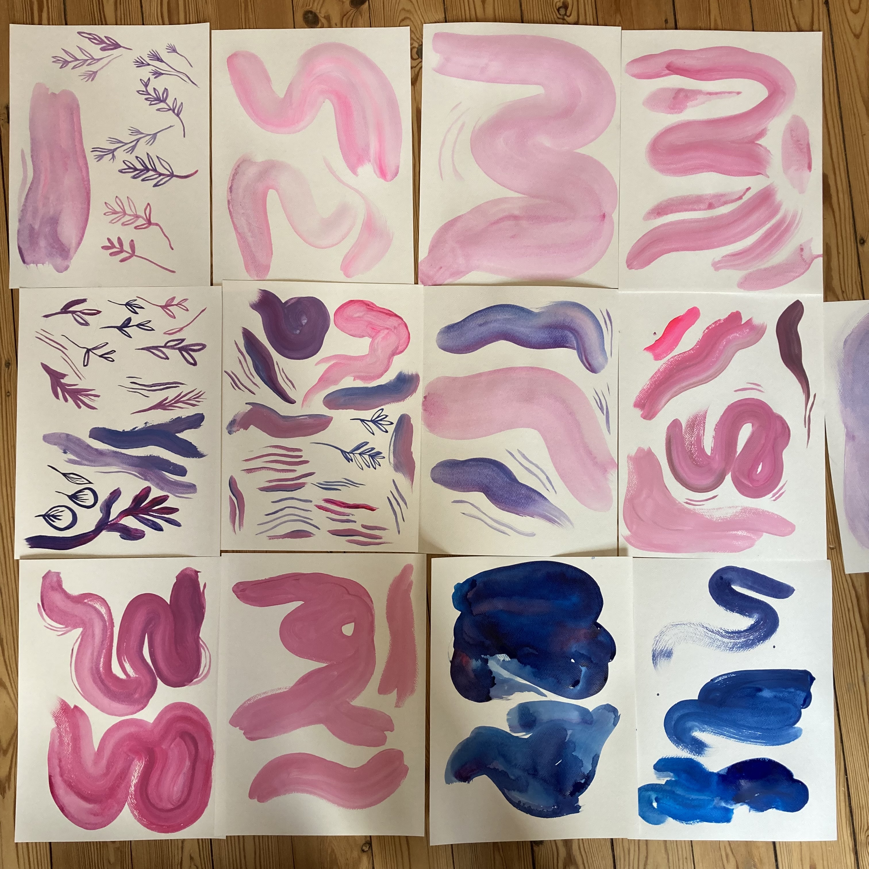 – je passe à la réalisation : je peins plein de textures qui vont me permettre de réaliser l’image par superposition