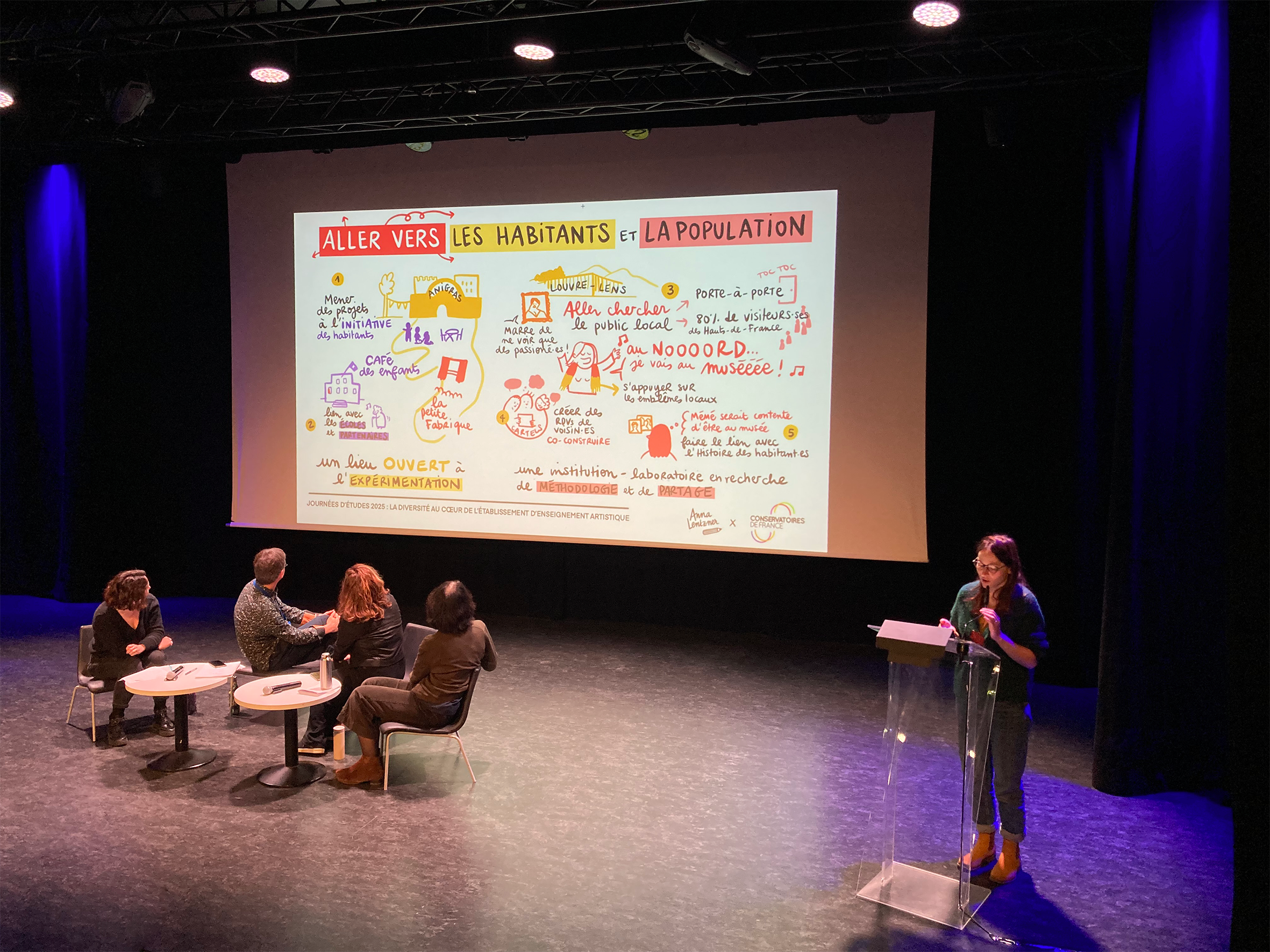 J’ai accompagné l’association des Conservatoires de France à l’occasion d’une journée d’études sur la diversité au sein des établissements d’enseignement artistique, le 7 février 2025, à Paris. Un rassemblement d’une centaine de directeur-ices d’établissements et membres de la communauté éducative et artistique, venus partager leurs pratiques et problématiques sur la question de la mixité, de la place du social dans l’enseignement artistique et vice-versa.