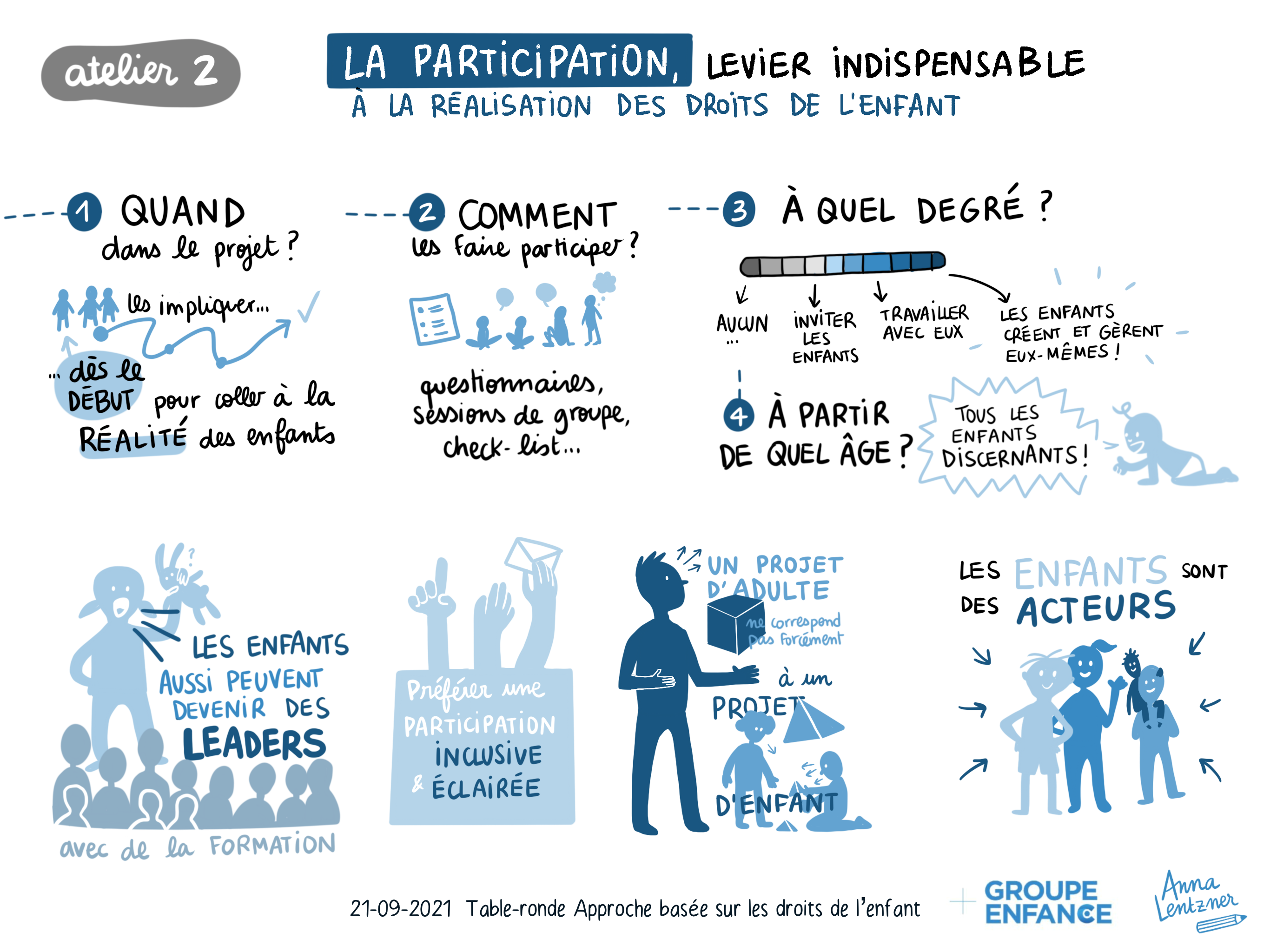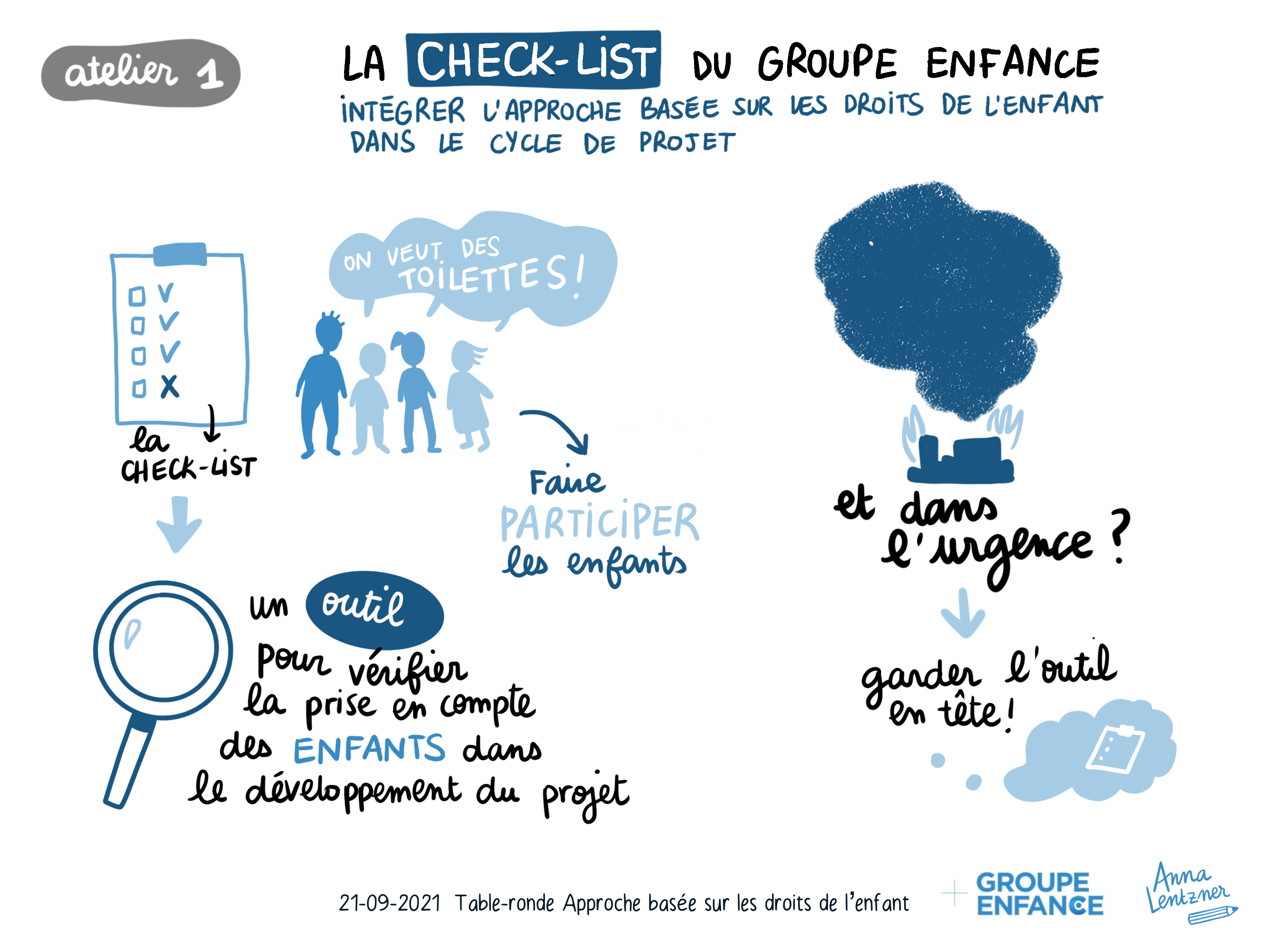 Une facilitation graphique sur le thème « L’approche basée sur les droits de l’enfant » à retrouver sur le site du Groupe enfance. J’ai d’abord réalisé la synthèse de deux ateliers de travail projetés pendant leur restitution. Puis j’ai traduis visuellement la conclusion de la journée.
