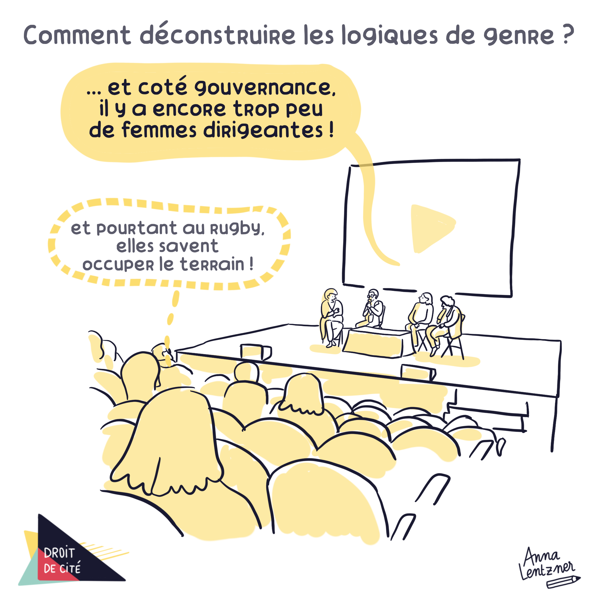 - Un reportage dessiné pendant la matinée, rythmée par plusieurs temps d’ateliers. Je déambule parmi les ateliers, je croque une anecdote, un verbatim qui retranscrit bien le sujet. Ces dessins ont alimenté le compte Twitter du Mouvement associatif, puis ont été exposés pendant le temps du déjeuner. Quelques extraits (cliquer sur les vignettes pour les agrandir) :