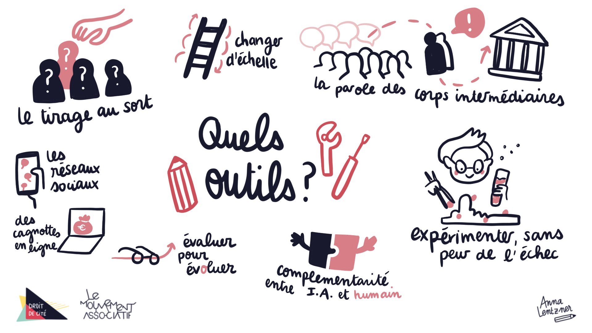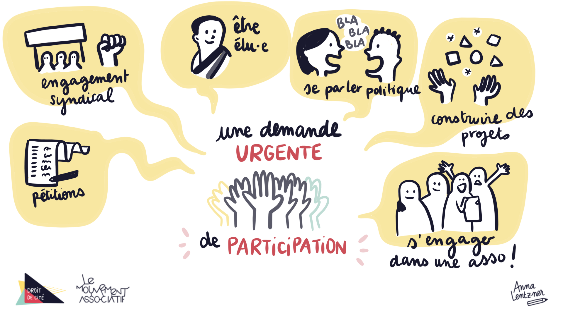 J’ai eu le plaisir d’accompagner en facilitation graphique Le Mouvement associatif, à l’occasion de ses 20 ans célébrés par « Droit de cité ! », un événement rassemblant leurs adhérents et partenaires. Une occasion de réfléchir à la vie associative, à ses enjeux et à la place des corps intermédiaires dans notre société.