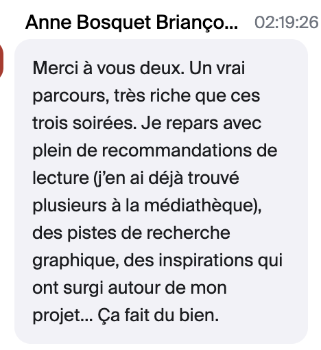 🎨 À travers des témoignages, des outils concrets et nos échanges, ces rencontres visent à nourrir votre élan créatif, quelle que soit l’étape à laquelle vous vous trouvez.