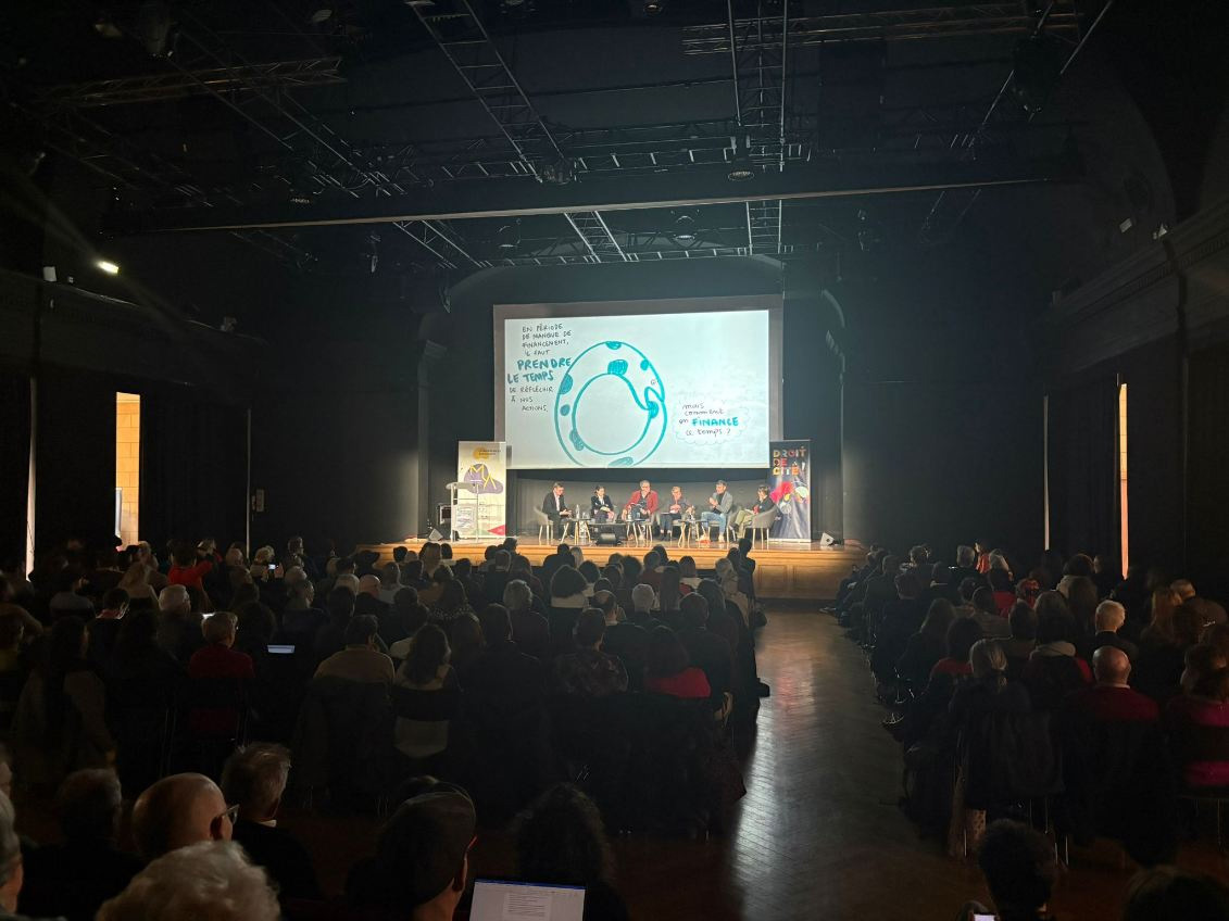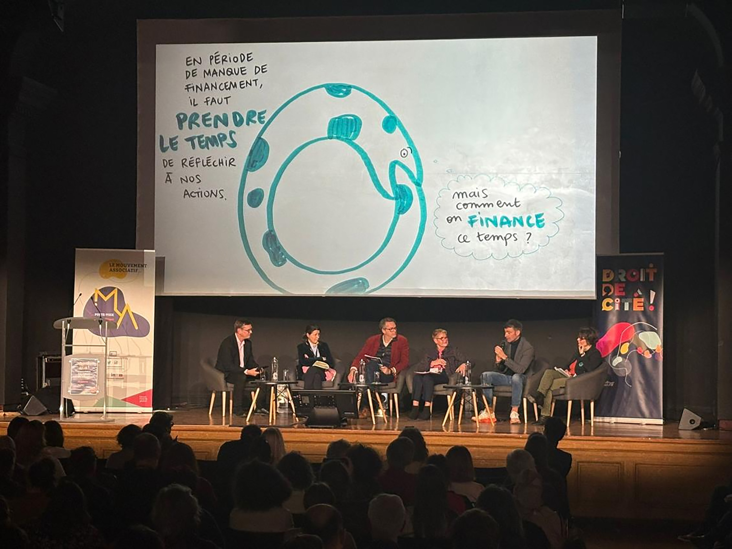 3. Une séquence de synthèse visuelle projetée en direct, pendant une table-ronde plus technique sur le financement des associations :